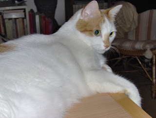 Como é um gato muito activo e com grandes carências afectivas, sofrendo por ficar sozinho, decidi dar-lhe uma mana há 5 anos, a Elis Regina. Esta, ladina e esperta, faz dele o que quer. E não sei como, porque é muito mais pequenina, consegue sempre tirá-lo dos locais onde ele dorme tranquilamente para lá ficar ela! E o pateta está sempre a dar-lhe beijinhos, a lambê-la...